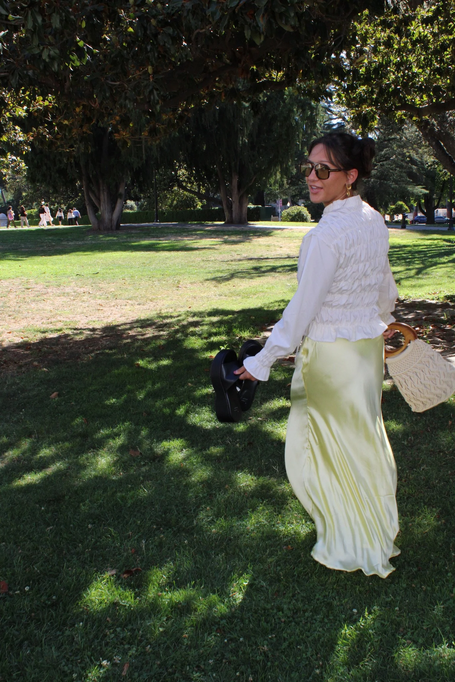 Cut from fluid satin with a full-length A-line silhouette, it sits high on the waist and drapes beautifully over the body without clinging. Perfect for dressy days, date nights, or when you just want to elevate the everyday. Pair it with our sahara blouse or an oversized top — she does it all.